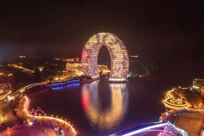 夜晚也可以打卡湖州的地标性建筑