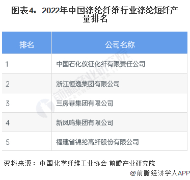 根据从行业竞争格局来看,根据中国化学纤维工业协会公布的2022年中国化学纤维产量排名,在中国涤纶民用长丝市场,桐昆集团、恒逸集团和新凤鸣产量排名前三;古纤道绿色纤维、恒力石化、百宏聚纤科技占据涤纶工业丝产量前三;涤纶短纤产量排名前三的企业分别为仪征化纤、恒逸集团和三房巷。