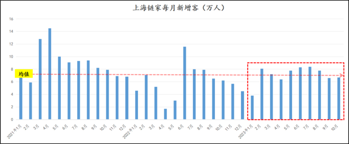 这是每月新增客户数据,虽然有下探,但总体平稳,想租房的人也没少。