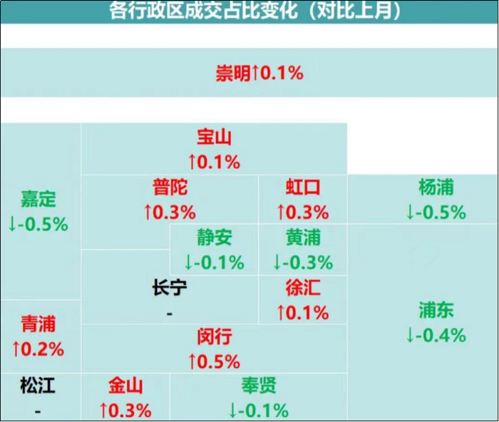 不知道是不是这个关联,在链家10月全市各区的成交占比里,中心城区成交都在下滑,崇明、金山的反而上涨了。