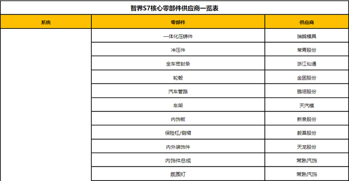 资料来源:微信公众号RIO电驱动11月13日文章《800V SIC 平台打造的智界S7的核心零部件供应商都是谁?》