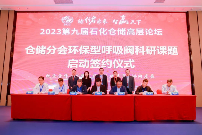 会上,中国化工流通协会仓储分会环保型呼吸阀科研课题启动签约。常州大学、中化扬州石化码头仓储有限公司、中化南通石化储运有限公司、福建中远海运化工码头有限公司、上海中远海运仓储有限公司、泰地石化集团股份有限公司、广东宏川智慧股份有限公司共同签约启动该课题。