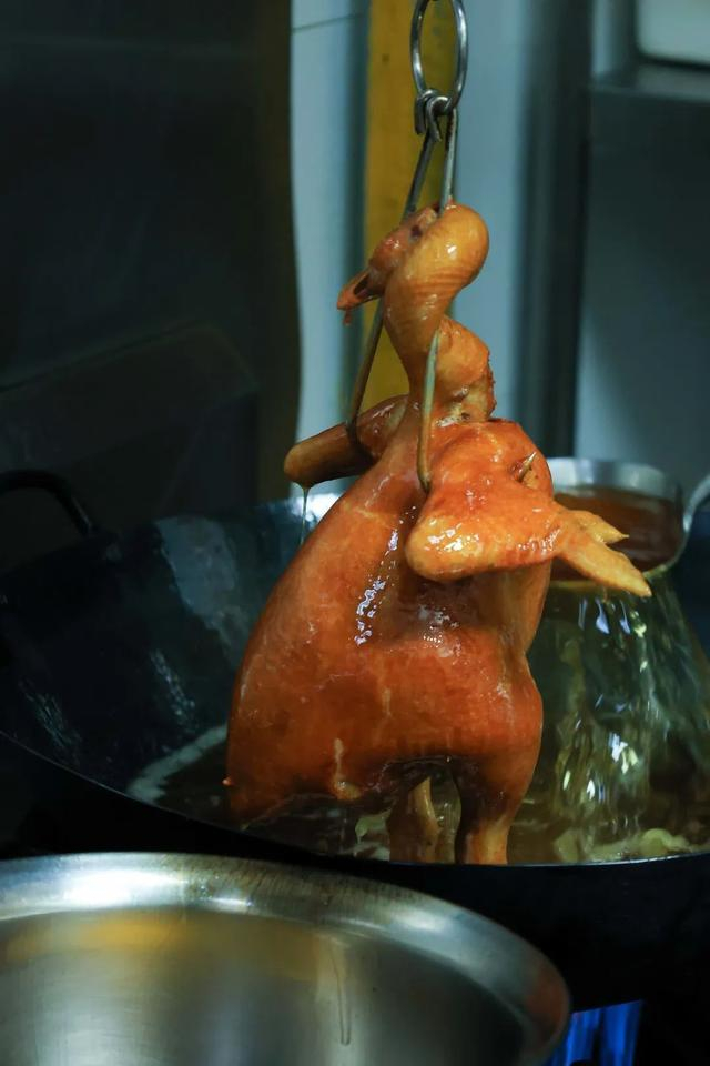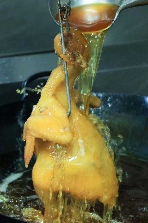 而是一层层地在鸡上淋油