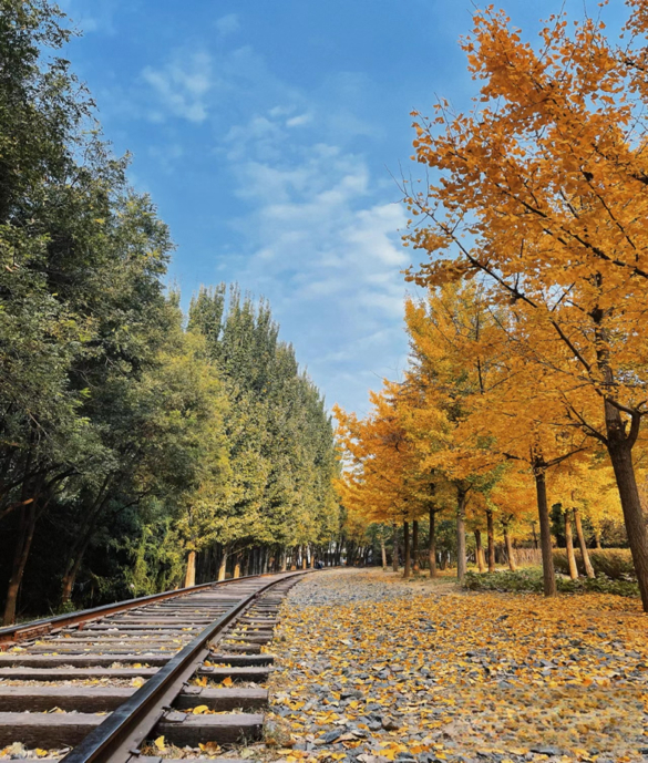 公园内的银杏林位置比较难找,需要从将府公园三期的红色大门进入,穿过一条涵洞,然后向北一路直线走到丁字路口左拐便能看到。这片银杏林随手一拍就能拍出郊野森林的大片感。氛围感拉满的银杏景色,在萧瑟的冷风中将温暖汇聚起来,带来无限美好。