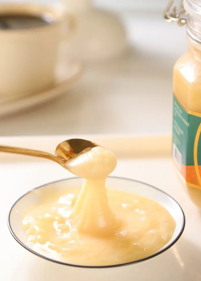 是的,和国内蜂蜜不同,俄罗斯蜂蜜看起来更像是冰激淋,甜蜜如丝,色泽透亮奶白,相当治愈~