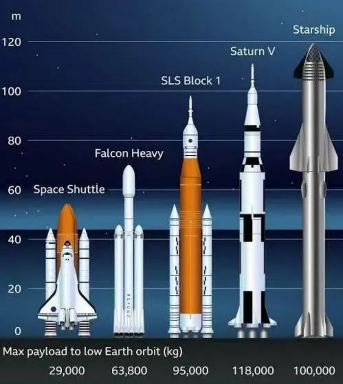 每经小编(nbdnews)了解到,SpaceX“星舰”是一种可重复使用的航天运输系统,也是目前人类历史上最高、最强大的火箭系统。“星舰”系统总高达120米,直径9米,“星舰”近地轨道最大运载能力为250吨,完全可重复使用时运载能力最高为150吨。