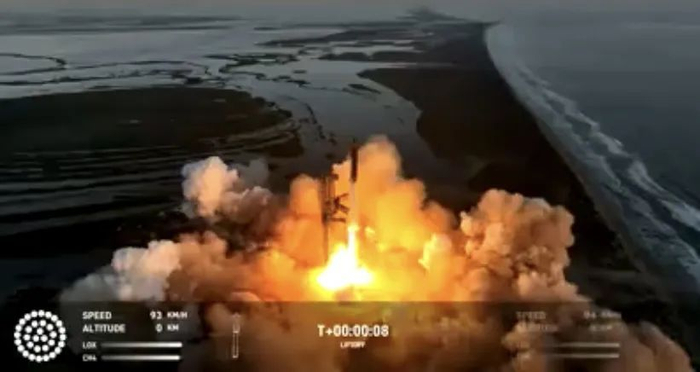 今年4月首次试射时,星舰从得克萨斯州升空约4分钟后爆炸。