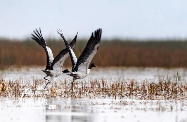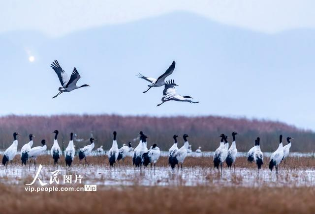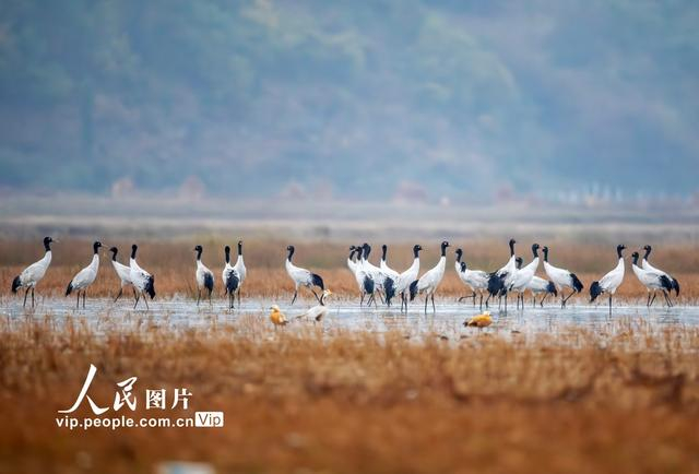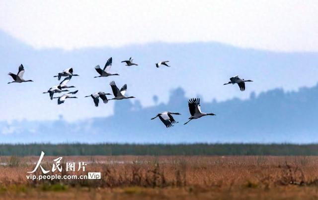 入冬以来,贵州省威宁彝族回族苗族自治县草海国家级自然保护区陆续迎来越冬黑颈鹤。据草海国家级自然保护区管理委员会最新监测数据显示,截至11月18日,越冬黑颈鹤数量已超1500只。范晖摄(人民图片网)