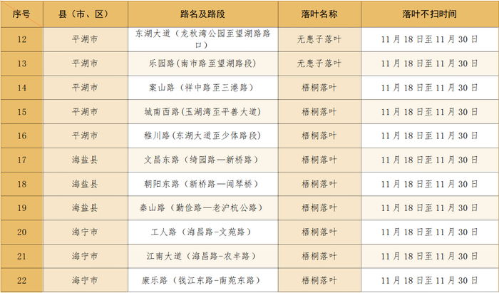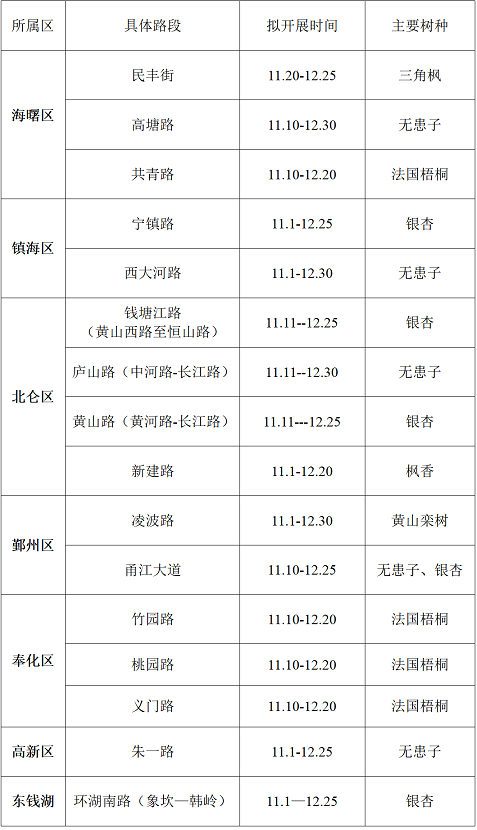 宁波海曙区、镇海区、北仑区、鄞州区、奉化区等地共有16条道路将实施“落叶不扫”。