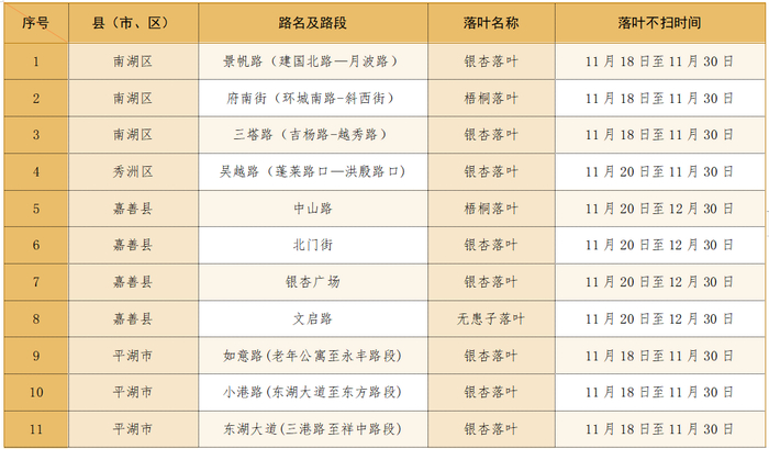 今年,嘉兴扩大范围,在全市29条道路开展“落叶不扫”保洁作业模式,于11月18日正式启动。道路树种以银杏、梧桐、无患子为主。
