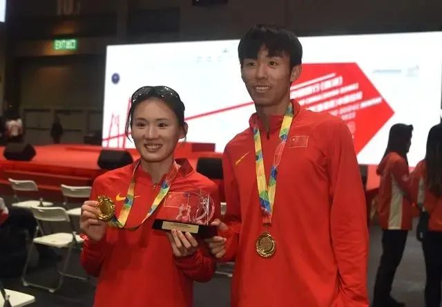 11月19日,中国跑手许双双(左)、谢冬生在颁奖后合影。