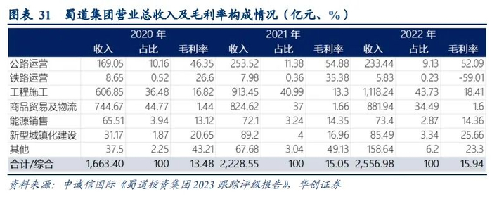 2021-22年集团完成了将交通工程建设业务由四个公司转变为由四川路桥承担。23年成渝收购二绕的股权中亦包括四川路桥子公司持有的19%股权。推动专业化资源资产整合,符合国资国企改革的大背景与趋势。