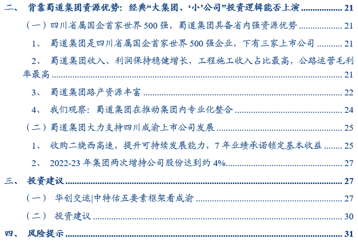 本篇报告我们重点聚焦四川成渝:我们认为其具备典型的“大集团、‘小’公司”投资背景与逻辑。