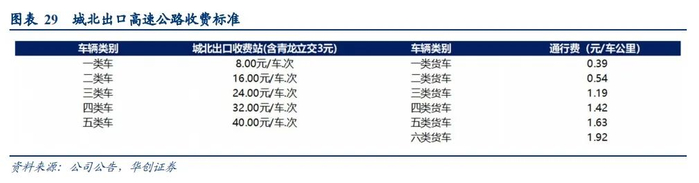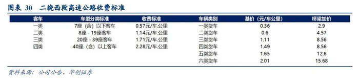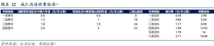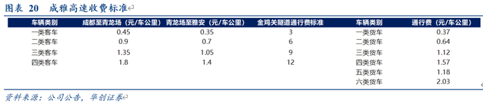 前文所述,目前公司主要路产成渝高速、成乐高速、成雅高速(青龙场至雅安段)一类客车收费为0.35元/车公里,而江苏沪宁高速等路产收费标准为0.45元,广东四车道收费标准为0.45元,山东省对于2018年前开通的路段收费标准为0.4元。