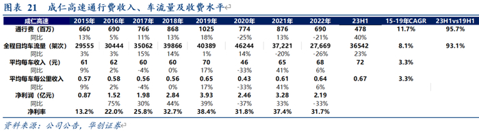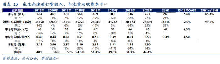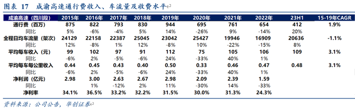 2) 成雅高速:利润占比最高的路产,23H1通车费超过19年同期