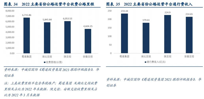 和湖北交投、陕交投、安徽交投等省公路运营平台比较,蜀道集团收费公路里程最长,通行费收入最高。