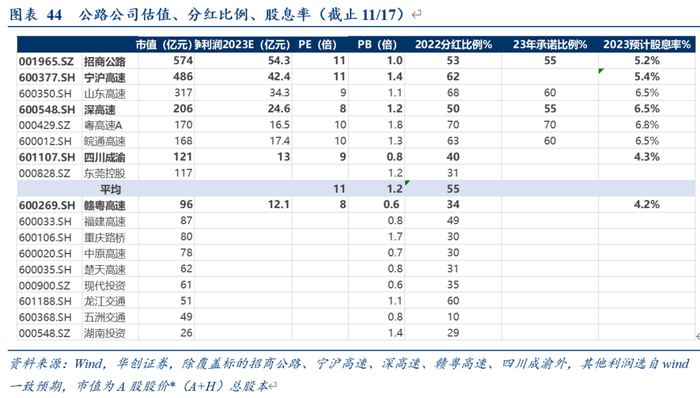 公司十四五规划明确发展战略,23年半年报提出“谋划市值管理,树立良好市场形象”。我们观察目前公司分红比例相对较低(22年40%),相较于头部公路公司,我们认为未来具备一定的提升空间。