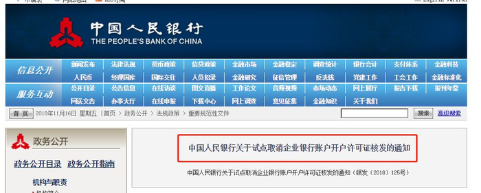 2018年5月23日,中国人民银行发布了《关于试点取消企业银行账户开户许可证核发的通知》(银发[2018]125号)