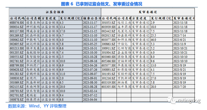 上周一级市场发行共1家,为丽岛转债(3.0亿);拿到证监会批文共3家,分别为诺泰生物(4.34亿)、神州数码(13.39亿)、博威合金(17.0亿);过会共3家,分别为远信工业(2.86亿)、益丰药房(17.97亿)、龙星化工(7.55亿);公布发行预案共1家,为艾比森(5.89亿)。截至上周五,待发新券中已拿到证监会批文的转债 19家,规模共计155亿;已通过发审委转债16家,规模共计217亿元。