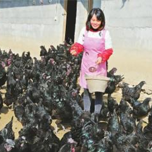 周照轩在养殖场照料旧院黑鸡。 受访者供图