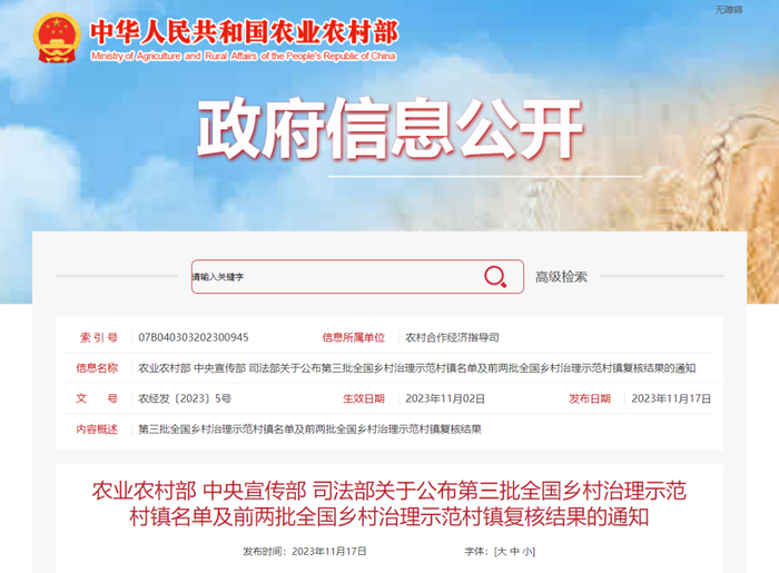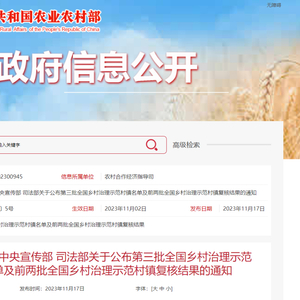 为贯彻落实党的二十大精神,按照《中共中央 国务院关于做好2023年全面推进乡村振兴重点工作的意见》部署安排,农业农村部、中央宣传部、司法部开展了第三批全国乡村治理示范村镇创建工作。各地积极组织开展创建活动,并对照创建标准优中选优推荐上报。在各地推荐基础上,农业农村部、中央宣传部、司法部经严格评审和公开公示后,认定北京市大兴区庞各庄镇等100个乡(镇)为第三批全国乡村治理示范乡镇、北京市朝阳区高碑店乡高井村等1001个村为第三批全国乡村治理示范村。