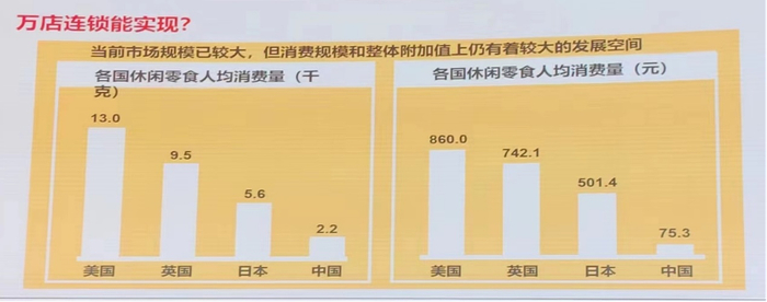 可是,你看看哪家零食企业的销量100亿了,50亿的又有几个。我们看一下饮料过50亿销量以上的品牌有多少?他们哪家开门店了。