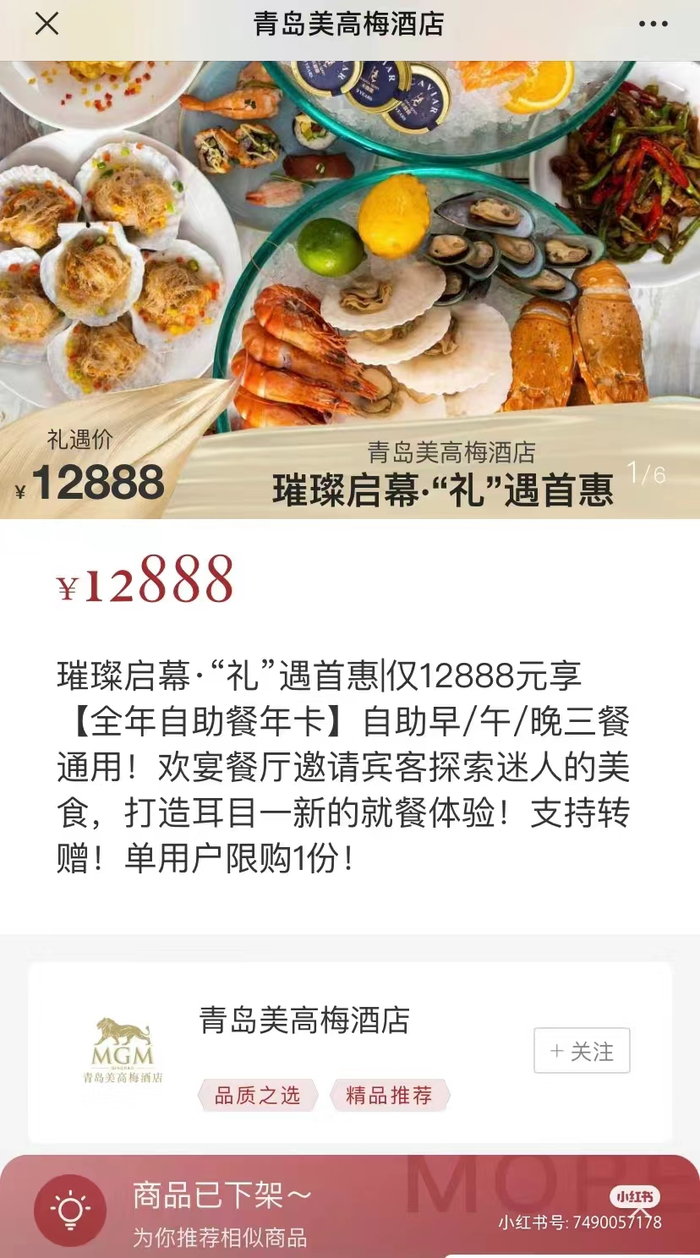 今年8月份,青岛一家美高梅酒店开业,推出了12888元的自助餐年卡套餐,平均一天餐费35元。