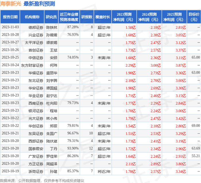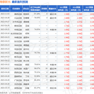 最新盈利预测明细如下: