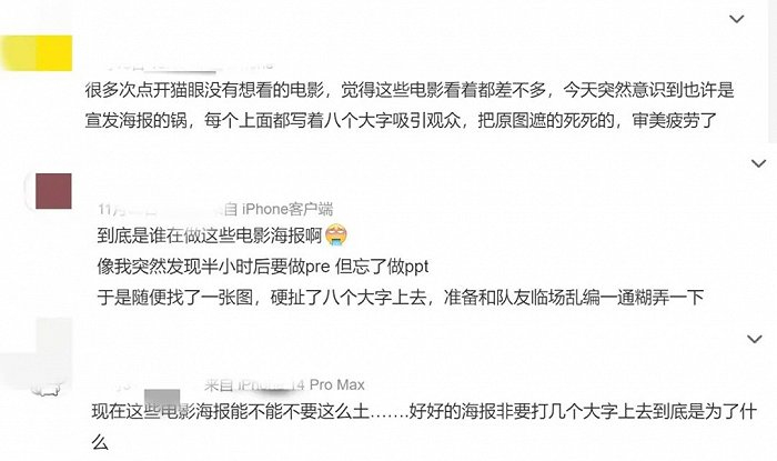 电影宣传海报如此“卷”的情形下,最可怕的结果并不是被网友吐槽,而是做了这么多工作对于电影票房依旧没有任何作用。药吃多了会有耐药性,像这种强突出的招数使用过多,同样会让观众感到审美疲劳。