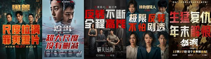 快到年末,许多电影齐刷刷地定档,颇有种卯足劲“闹”一波电影市场的势头。但如果将每部片子的海报排列在一起就会发现,真正出挑的也不算多。尤其是这些手办式的人物罗列,无法暗示主题也无法体现人物,把人一遮把文字删去,所有都像是经过PPT模板,一堆流水线上生产出来的工业品。