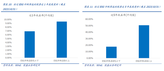 经过ESG评级的筛选,指数成分股有望实现更高的回报。我们按照深证50编制规则“剔除国证ESG评级在B及以下的股票”对深市A股进行回测,结果显示,平均而言ESG评级在B以上的股票历史表现远高于ESG评级在B及以下的股票历史表现。深证50指数在编制过程中对成分股经过了ESG评级的筛选,因此深证50指数未来有望实现更高的收益率。