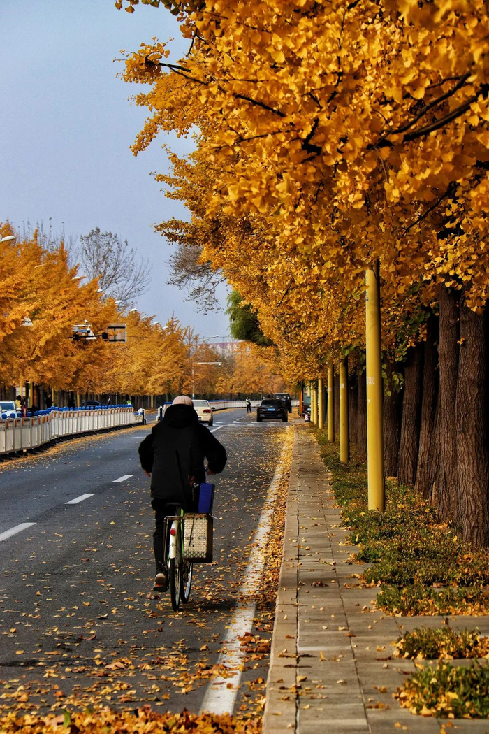 路两侧的银杏树是如此的美丽,行驶在这条道路上,就像穿行在一条如画长廊中。