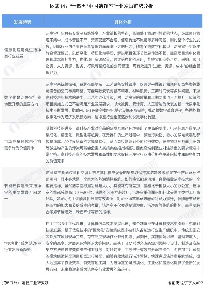 随着国家战略性新兴产业的发展,中国洁净室行业未来发展空间巨大,数字化和模块化转型升级将成为行业主要发展趋势,具体详情如下: