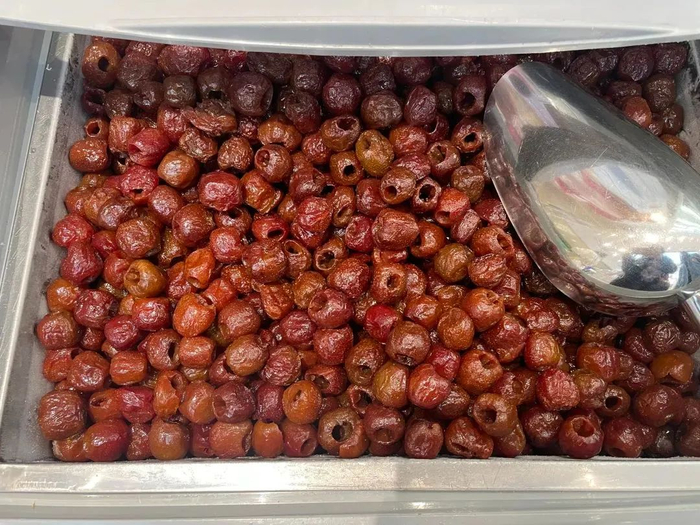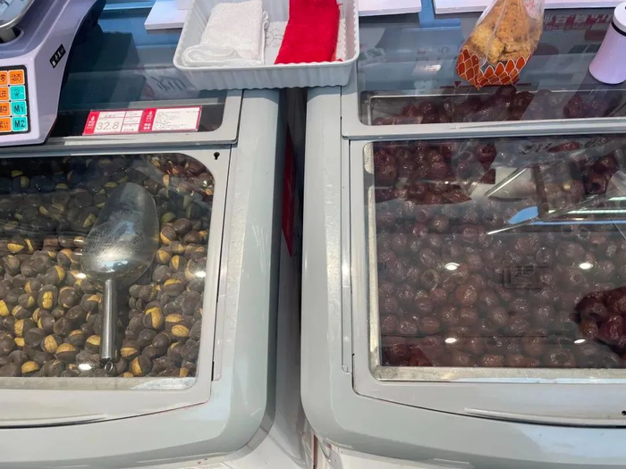 记者来到江苏无锡某炒货店,在最显眼的入口处就摆放着两个冰柜,一个是冰板栗,一个是冻山楂。当记者问店员,山楂和板栗是否能一起吃时,店员表示:“不太清楚,应该没关系。”