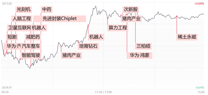 财联社11月20日讯,大盘全天震荡反弹,三大指数均小幅上涨。北证50指数涨超3%,10只北交所个股涨超10%。盘面上,机器人概念股表现活跃,赛为智能、富佳股份、科力尔、日发精机等超10股涨停。脑机接口概念股震荡走强,南京熊猫、创新医疗涨停。猪肉概念股迎来反弹,金新农、新五丰涨停。短剧概念股开盘冲高,岩山科技、引力传媒、天威视讯涨停。卫星导航概念股尾盘拉升,航宇微、湘邮科技涨停。此外,连板股今日表现强势,14只昨日连板个股(剔除ST)中11只涨停晋级。总体上个股涨多跌少,全市场超3900只个股上涨。沪深两市今日成交额9273亿,较上个交易日放量1006亿。