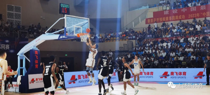 8月18日晚,2023“中国奥飞杯”国际职业篮球巡回赛(中美婺源站)比赛现场。