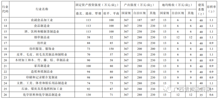 贵港市工业项目建设用地控制标准