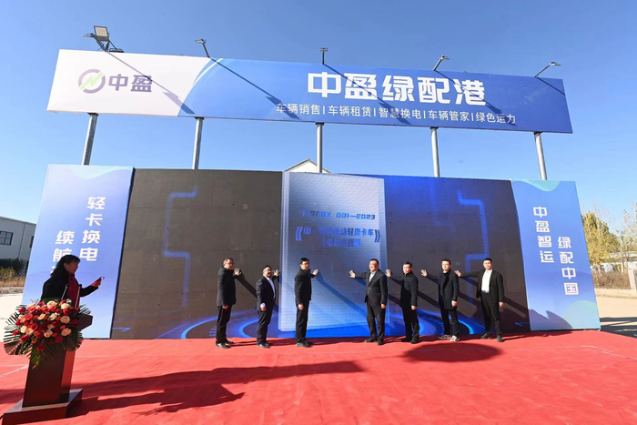 上述标准发布之际,采用这套标准的系列产品问世——全国首辆底盘全自动换电轻卡交付、中盈智能共享换电站启用。