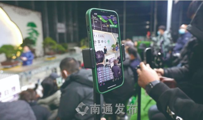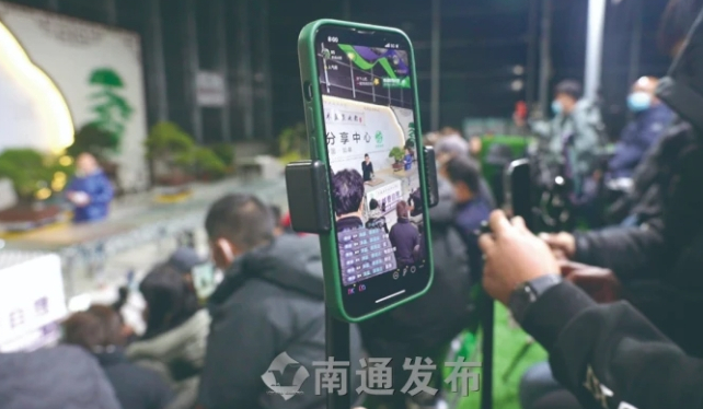 乘着新媒体蓬勃发展的东风,成功“出圈”获得更多传承人的还有国家级非物质文化遗产如皋盆景。17日晚上天刚黑,位于城南街道夏庄社区的中国小微盆景集散中心里便开始热闹起来,数十名花农和主播齐聚一堂,进行着当天的直播。