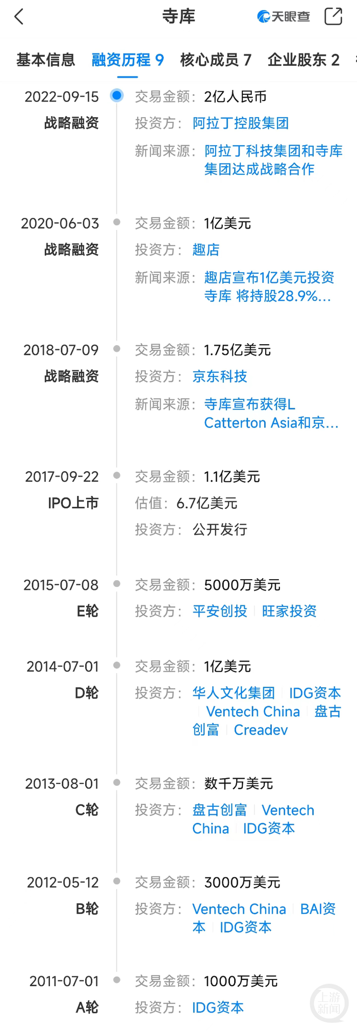 有分析人士指出,时间仅过去三年,昔日合作伙伴就已经对簿公堂,反映的是寺库不断恶化的资金状况。但神奇的是,就在去年寺库还获得了巨额融资。天眼查显示,包括IPO上市在内,寺库一共获得九轮融资。最早获得融资是在2011年,投资方是IDG资本,资金量1000万美元,而最近一次融资就是去年。