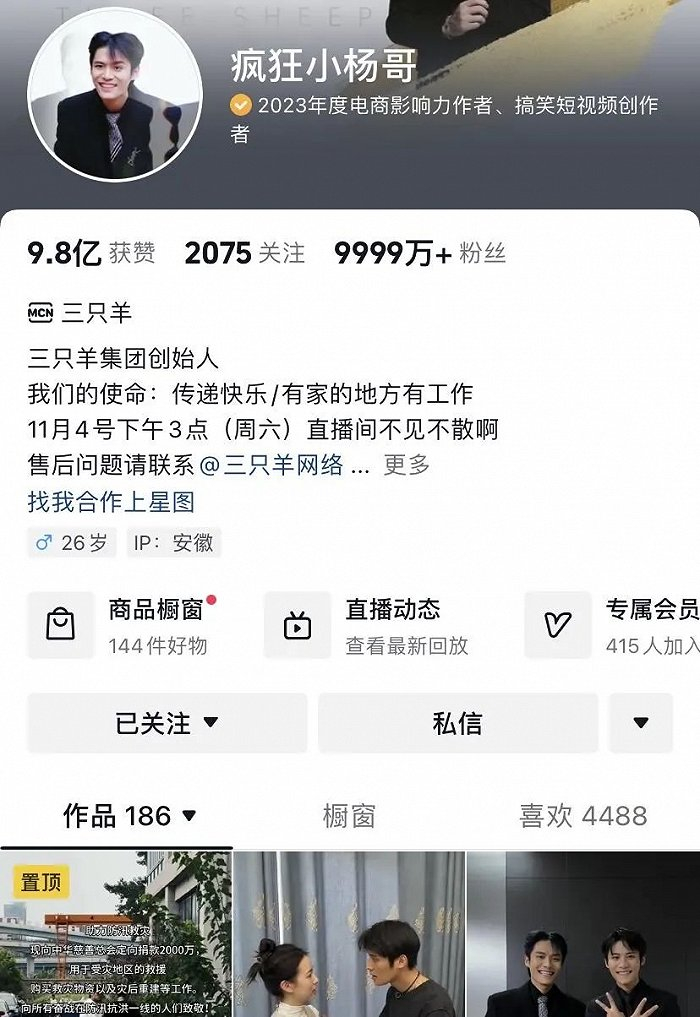 《1亿元买楼,3000万办演唱会,请来众明星的小杨哥到底有多能赚?》北京商报