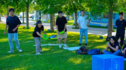 年轻人在位于海南省海口湾的世纪公园骑行和开展拓展活动。张茂 摄(人民图片)