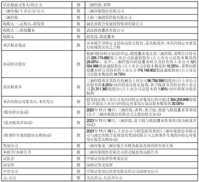 根据《表决权放弃协议》的约定,自协议转让股份过户登记日起,三湘控股放弃其持有的剩余上市公司96,758,596股股份(占上市公司总股本的8.20%)对应的表决权。黄卫枝放弃其持有的上市公司21,311,360股股份(占上市公司总股本的1.80%)对应的表决权。三湘控股、黄卫枝表决权放弃期限为协议转让股份过户登记至联投置业名下之日起至联投置业及其一致行动人合计持有的上市公司股份比例减去黄辉、三湘控股、黄卫枝、黄建及其各自一致行动人合计持有的上市公司股份比例的差额超过10%(计算股份比例时不四舍五入)之日止。表决权放弃期限届满后,三湘控股、黄卫枝的放弃权利全部自动恢复。