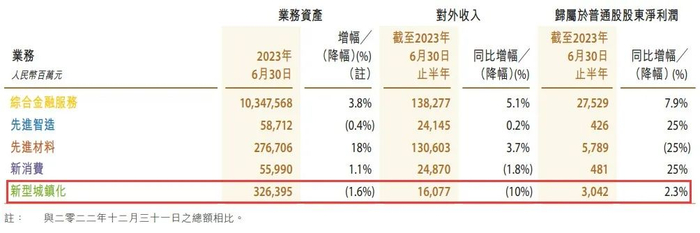 总的来看,在新型城镇化板块,中信近年的表现并不亮眼。最新半年报数据显示,其该板块对外首日160.77亿元,同比下滑10%;净利润30.94亿元,同比微增0.9%;总资产263.95亿元,同比下滑1.6%。