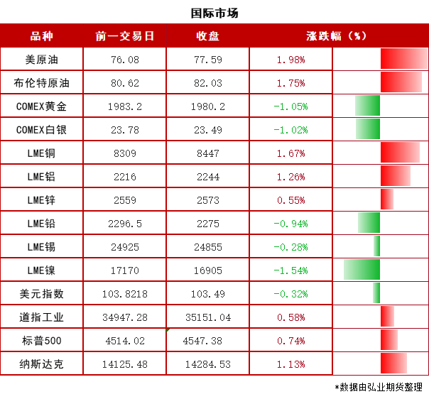 海外:美国上周初请失业金人数为23.1万人,超过预期值22万人。最新续请失业金数据为186.5万人,升至近两年来最高水平。劳动力市场的转冷叠加通胀回落,增强了人们对美联储结束本轮加息周期的预期,市场预计美联储最早明年一季度降息。