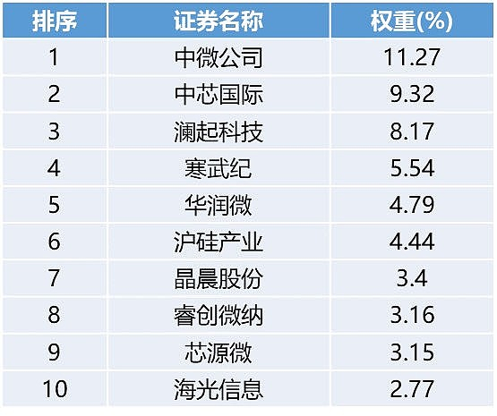 上证科创板芯片指数前10大权重股(中证指数公司,2023.11.14)