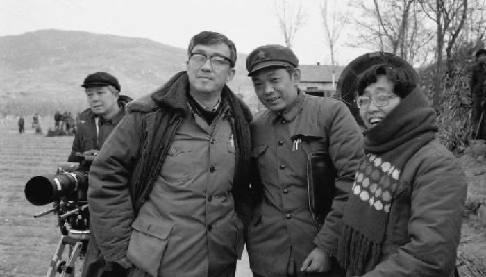 1984年12月22日,谢晋(右三)和副导演武珍年(右一)、编剧李存葆(右二)在《高山下的花环》拍摄现场。