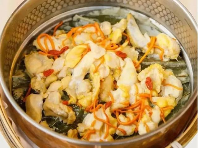 花胶桑拿鸡,只用足月养殖的玉米麻黄鸡,肉质细嫩鲜美,加入6种古法药材,上蒸下煮,可以喝汤的SPA鸡,锅气十足!