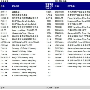 注:追踪恒生指数、恒生国企指数和恒生科技指数的ETF基金规模