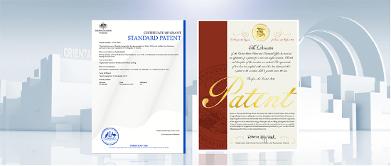 2023年,东方雨虹关键技术及重点产品先后获得澳大利亚(Patent number:2019413405)、美国(专利号:US011668056、US011655401)等发明专利授权;多个产品获得德国EC1plus环保认证、法国A+认证、欧盟CE认证,其中光伏胶膜产品获得德国TÜV机构及美国UL认证机构的认证,为东方雨虹产品、技术、服务出海打下坚实的基础。